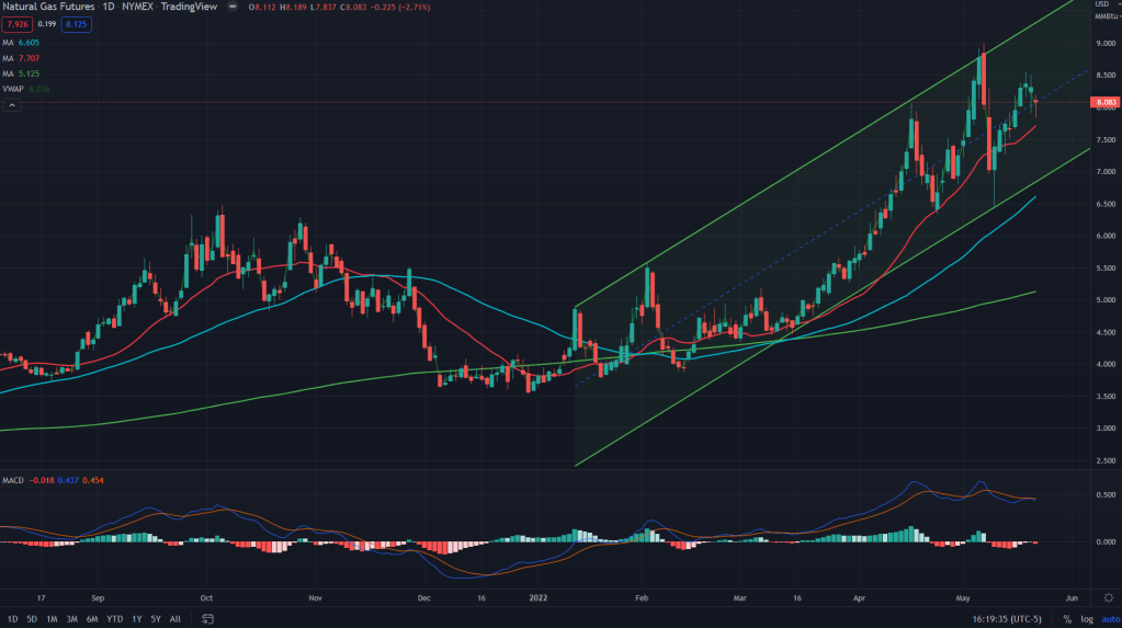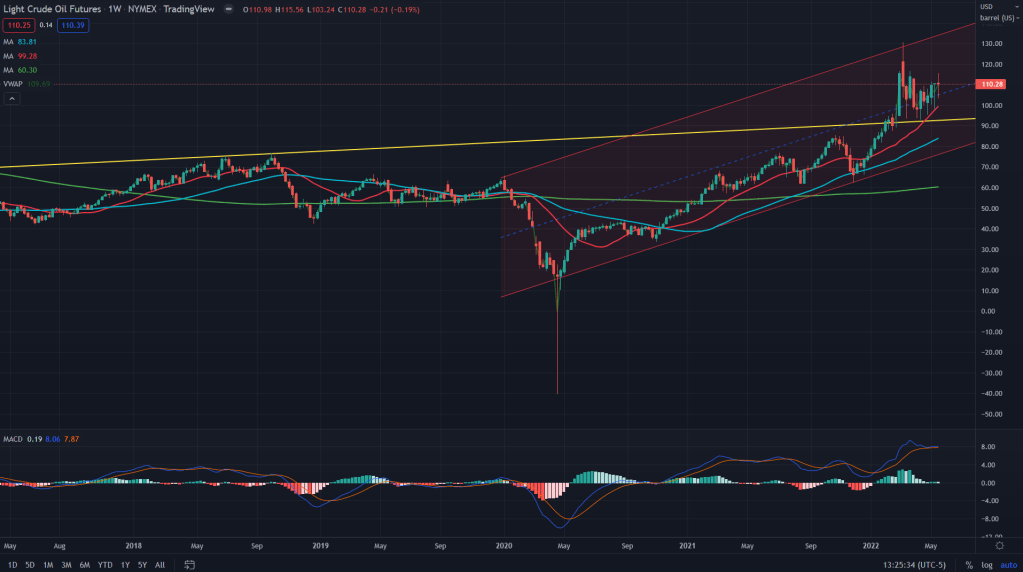 And when we zoom in further onto the weekly charts of crude, it appears to have found resistance at the upper end of the channel resistance and bounced back after mean reverting on the weekly.
