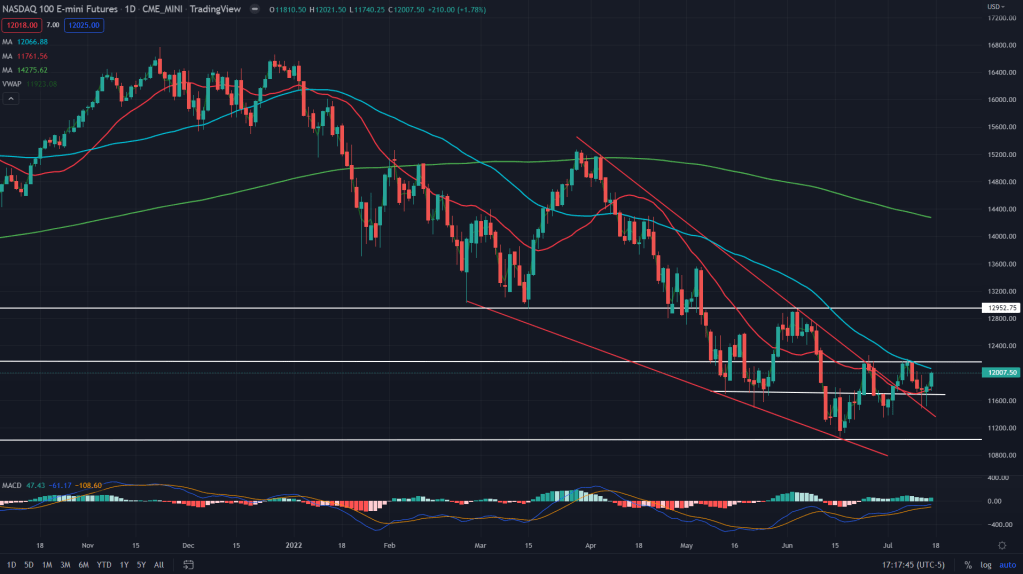 The reversal of last week was based on the hammer candlestick on the daily on July 14th (where we went long at the close) and the confirmation was there for everyone to see on the 15th. Although we do face 50SMA as the immediate resistance along with daily supply zone around 12,160, bulls can still continue to buy the dips as the weekly hammer is formation of last week gives them enough ammo to bet on. Buy the dip remains the mantra for the coming week for the targets of 12,950 where bulls have to face music from the bears at the weekly supply zone.