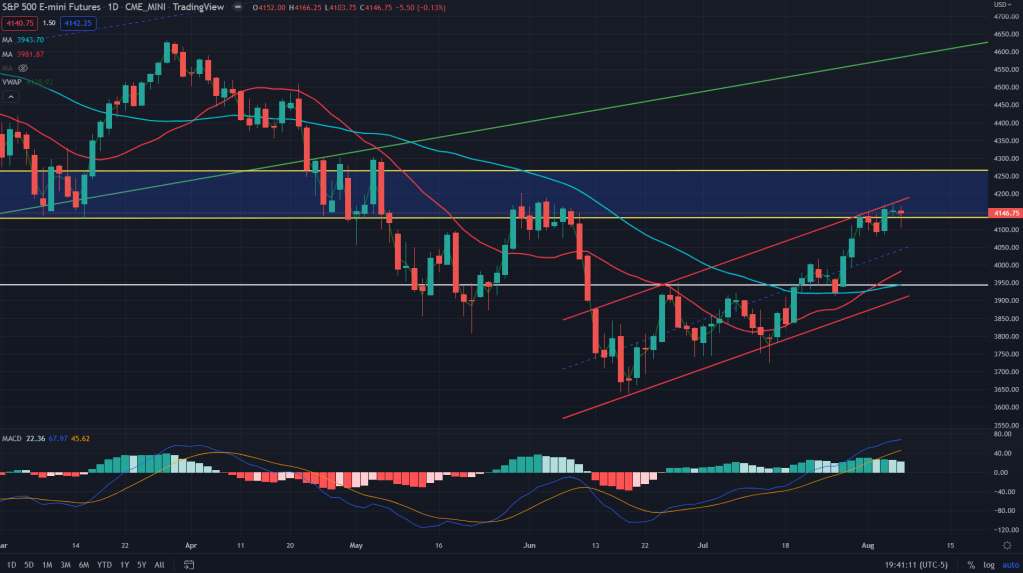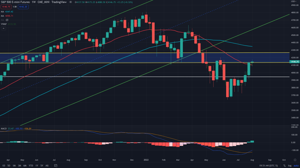 ES (Weekly): Above the 20 SMA on the weekly but still in that danger zone of the weekly supply zone of 4125-4270.