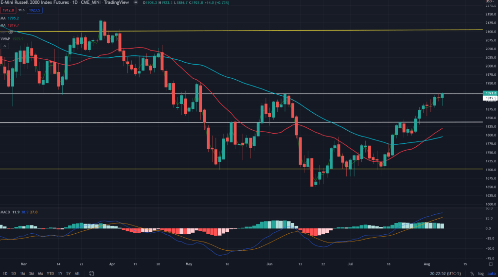 RTY (Weekly): On the weekly chart though, bulls have nothing going wrong as of now as the price continues to sit comfortably above weekly 20SMA and there is no weekly supply zone in sight as yet.