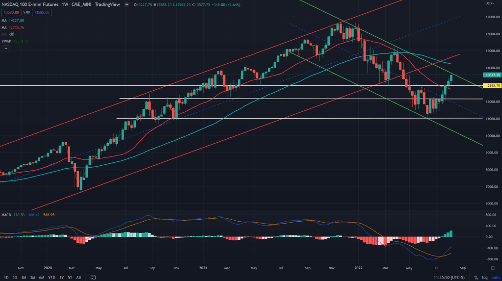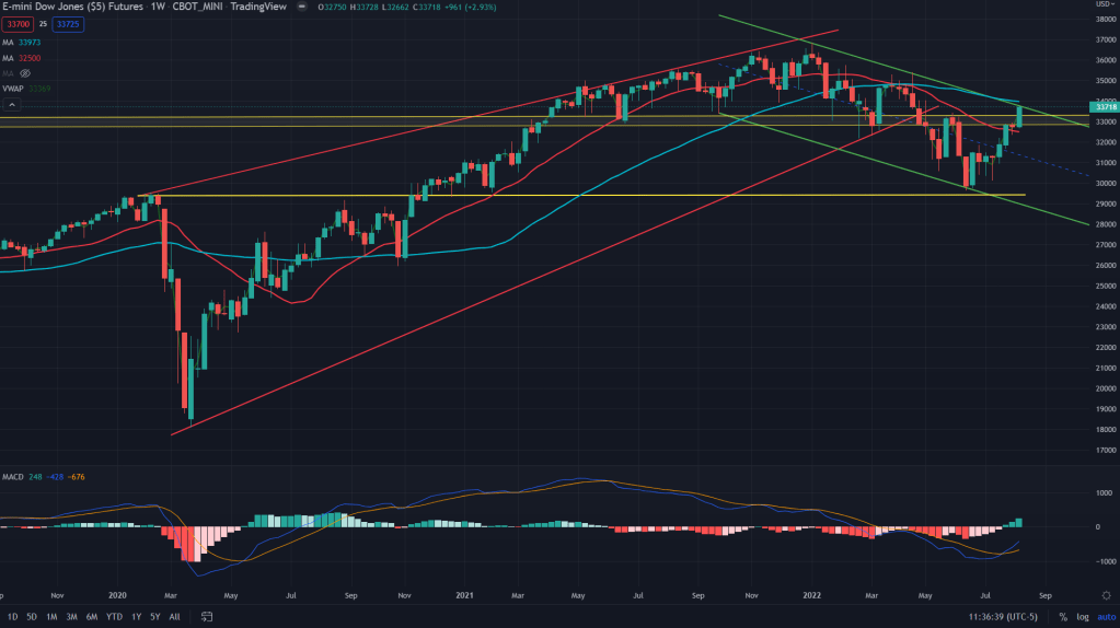 YM (Weekly): Even the Dow Jones Industrial index future is sitting right under the channel resistance drawn from its all time highs and just above is 50 weeks MA at 33,973 and right there is also its 200 days MA at 33834.