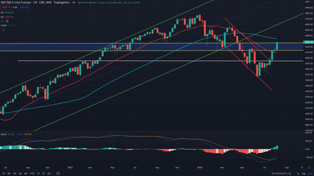 ES conclusion: I would attempt my shorts between 200 days MA (4325) and the 50 weesks MA (4341). Although won’t be aggressive on the ES just yet.