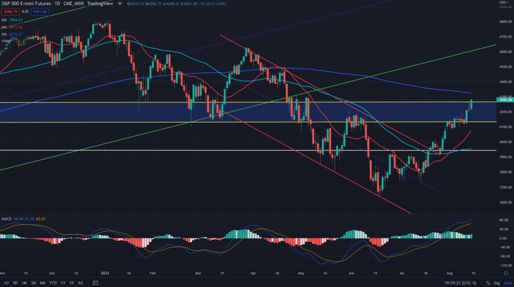 And when we look at the daily charts, 4325 is where 200 MA comes into play that could provide enough resistance for the bears to show up.