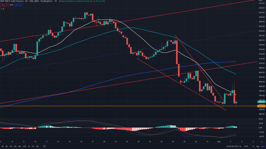 ES (4H): While there is 4H demand line right at 3915, it seems weak now as it bounced off the demand and sold off again, I would expect this sell off to go past the 4H demand line.