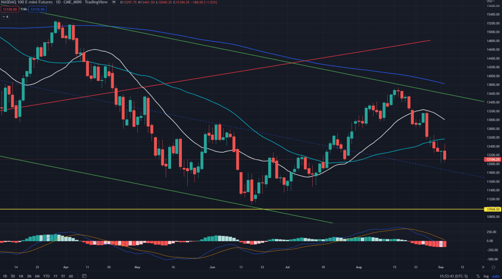 NQ conclusion: Selling NQ with a stop above 12300 with target around 11400 is a good risk reward for the bears.