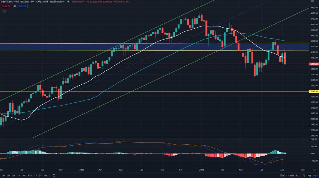 ES (Weekly): What we see her is a weekly bearish engulfing candle, which clearly means the better trade is to short and given that we are now way below the 20 and 50 weeks MA, its all the more rewarding to stay short with potential targets of recent lows and below (3400). But should we?