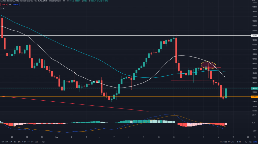 RTY (4H): Here’s an explanation of why we went long and how we went wrong: The low base formation was a diamond bottom earlier which it broke out of and failed instantly before we could move out. End result: false diamond breakout resulting into low base breakdown, all the way towards the 4H demand line of 1790. Could we have gone short after the low base breakdown, yes but it was coin flip trade and could have gone otherwise just as ES and NQ were and it made more sense to stay out instead.