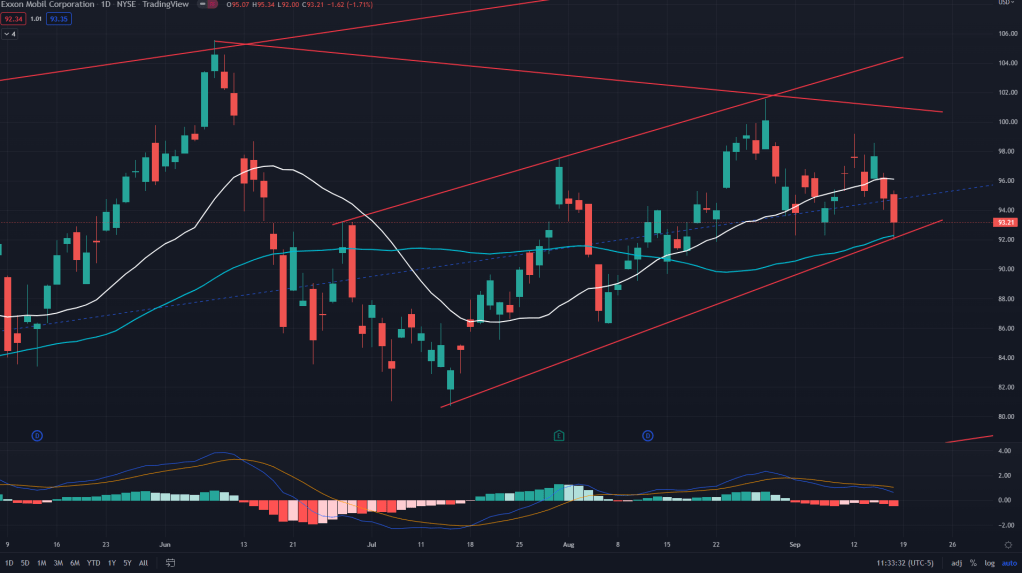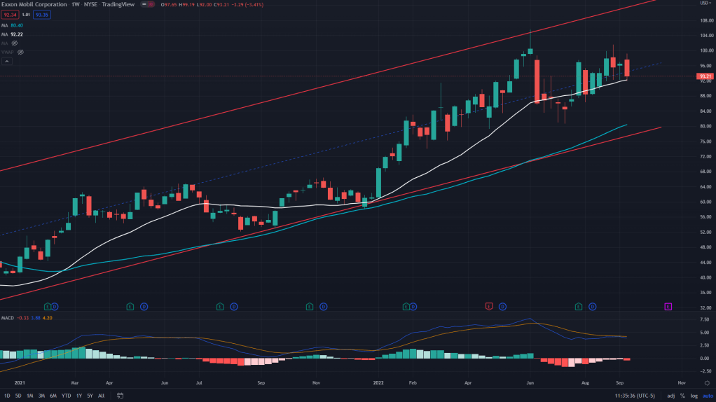 XOM (Weekly): 20 weeks MA and no signs of negative MACD divergence are good enough for me to believe that there is one attempt towards new high is left before the stock peters out.