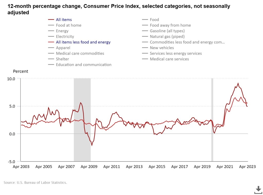 Last summer, I had written about ‘why I think inflation is far from peaking‘ and I was of a belief that inflation won’t come down to Fed’s 2 percent target anytime soon. It’s been almost 3 quarters since then and we have seen inflation almost halving from 9.1 percent in June 2022 to 4.9 percent in April 2023. Although the headline numbers are far better compared to what we saw last year, there are some key questions that need to be answered. Is the peak inflation behind us? Has Fed done its job of raising interest rates and brought us back in the game? What if it leads to deflation? What about recession? Is it coming? Soft landing or hard? We’ll try and tackle as many of these as we can.
