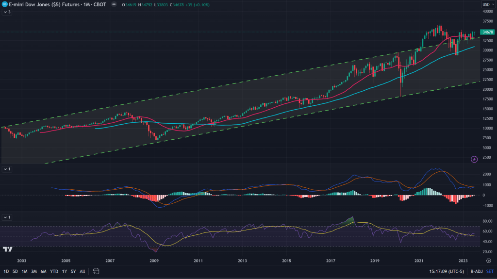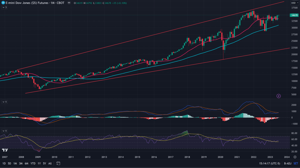 YM (Monthly): If ES and NQ formed those megaphones and decades long channel, can Dow Jones be any different? And yes, not too far from the all time highs either.
