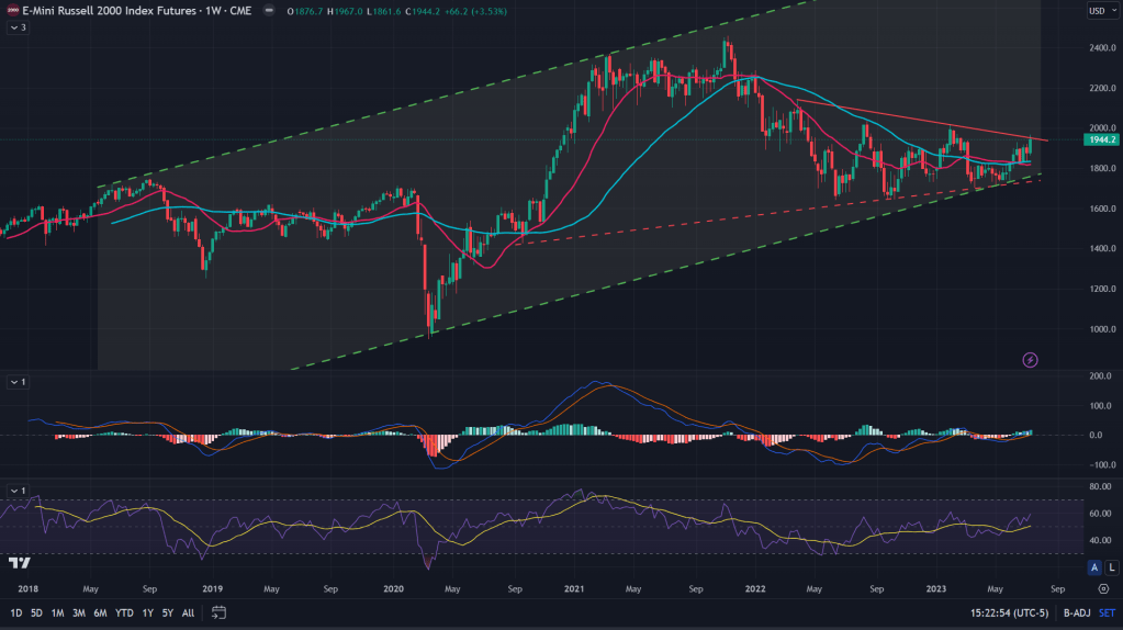 RTY (Weekly): While RTY doesn’t have enough data to talk about monthly charts, weekly does give us some hopes to be bullish on. Continues to build from strength to strength and that breakout? Yes, it’s finally around the corner.
