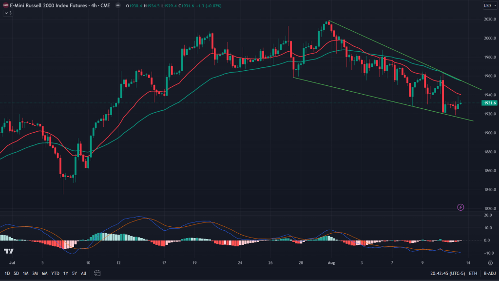 RTY (4H): The sell-off in the small cap index has been sharper and that’s not a comforting sign. Only solace is that it is forming this bullish falling wedge on the 4H chart but no MACD divergence yet.