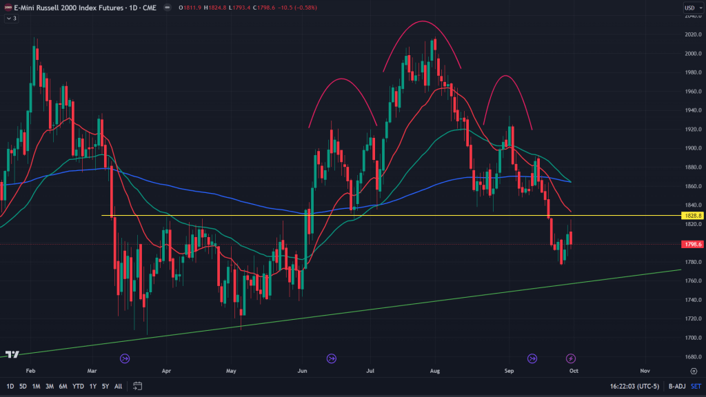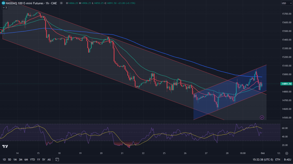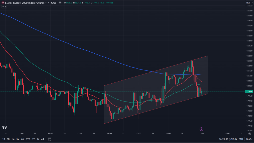 RTY (1H): RTY has been forming a bear flag on the hourly, just like all the other key index futures. It seems on the verge of a breakdown.