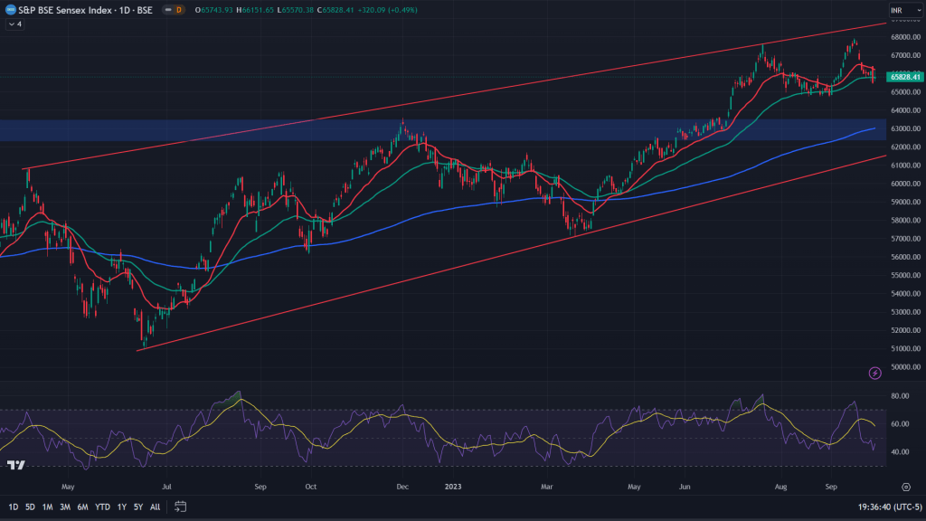 Alternative there is another wedge formation on the daily chart of Sensex and the topping out is visible here too wherein the new high couldn’t even reach higher end of the rising wedge (usually that’s the first sign when markets top out).