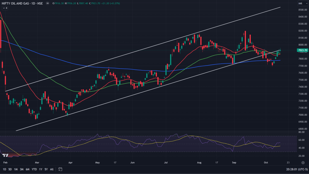 Nifty oil and gas (Daily Chart): Oil and Gas index of Nifty has broken down of a long term channel and has backtested too. Any reversal from here would be catastrophic.