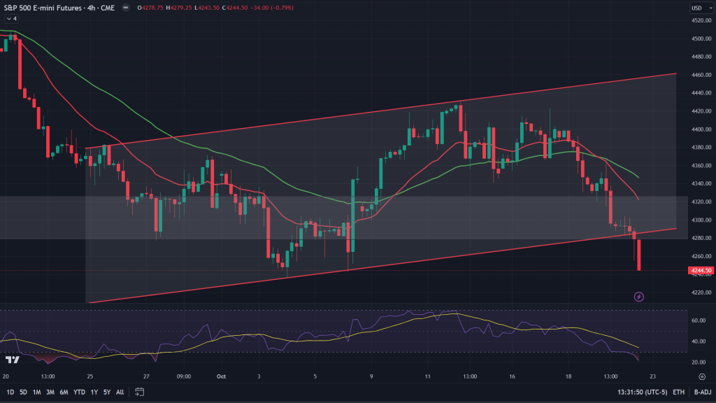 ES (4H): Ever since ES topped that channel resistance last week, it continued to dip further and over the course of previous the dip got deeper and the channel support too gave away on Friday after holding up for a bit. RSI has reached oversold zone and is a sign of caution for the bears.