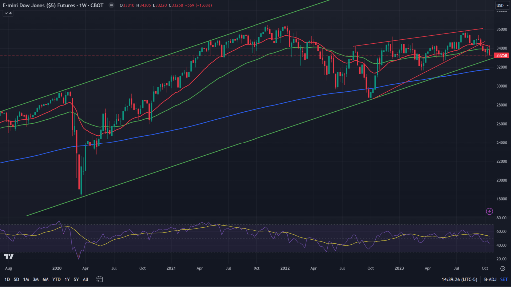 YM (Weekly): While the daily is sitting right above the key channel support, so is the weekly chart of the YM. Yes, it is ok to hold your breath while market decides to crack past this key support or not.