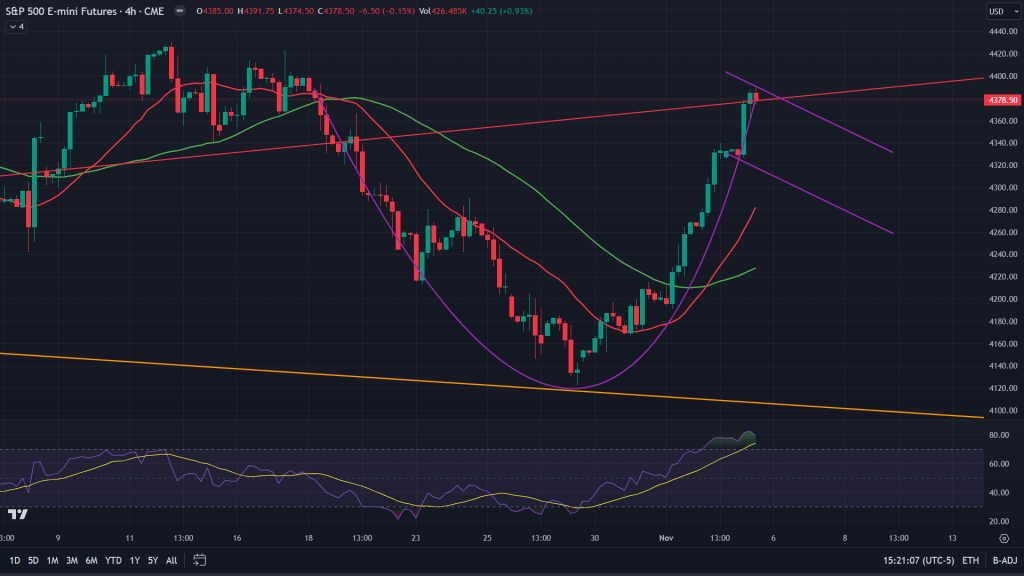NQ (Nasdaq 100 4H chart): Nothing new to write when it comes to NQ, pretty similar to ES in every single way, including the formation of cup and handle on the 4H chart.