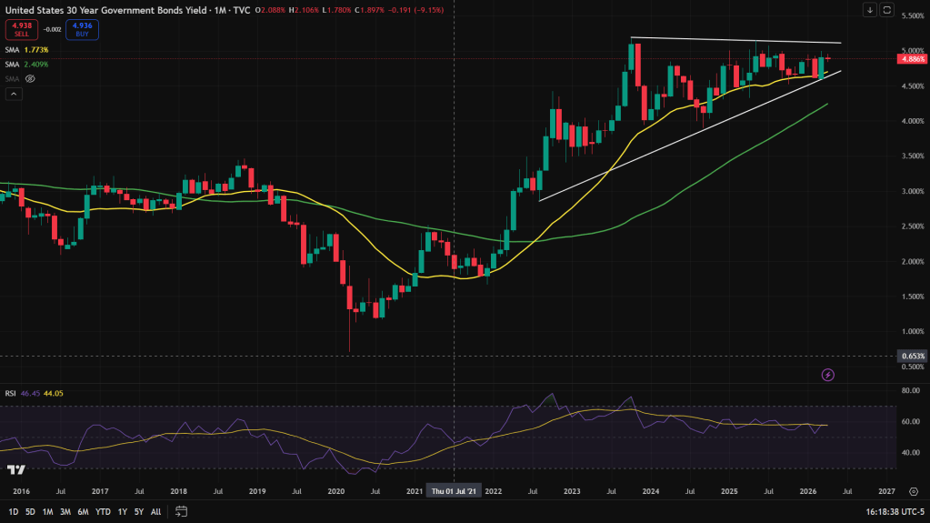 U.S. 30-year Govt Bond Yields – Monthly candles: Even the 30-year candles, which is a barometer of long term interest rates, shows upward trending consolidation and one would be wise to watch this space more closely.